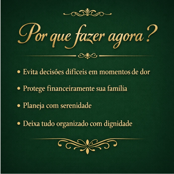 Evita que os familiares tomem decisões difíceis durante o luto.